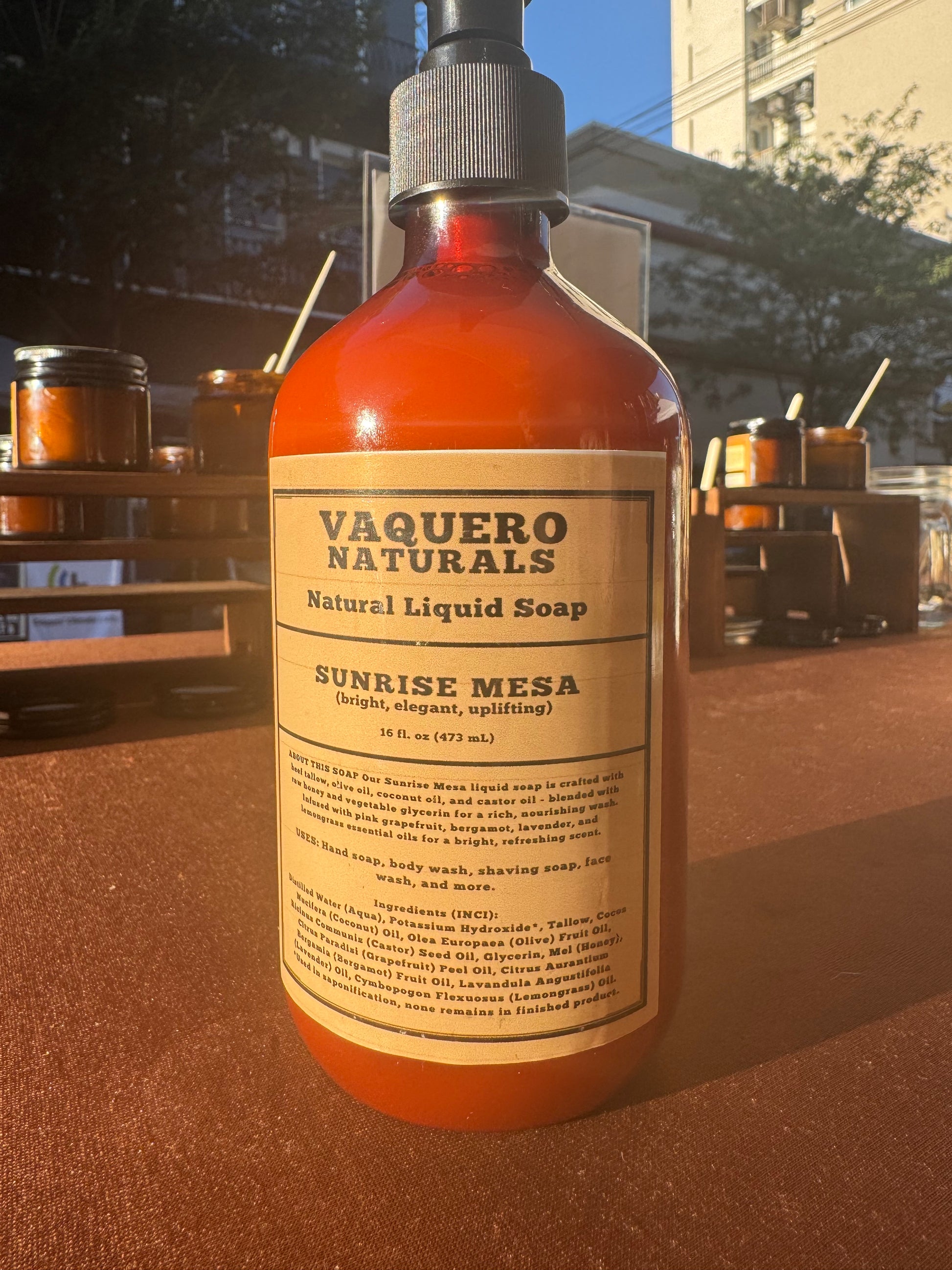 Our handcrafted liquid soap is made the old-fashioned way with grass-fed beef tallow, coconut oil, olive oil, and castor oil — enriched with raw honey and vegetable glycerin for a rich, creamy lather that leaves skin clean and moisturized.